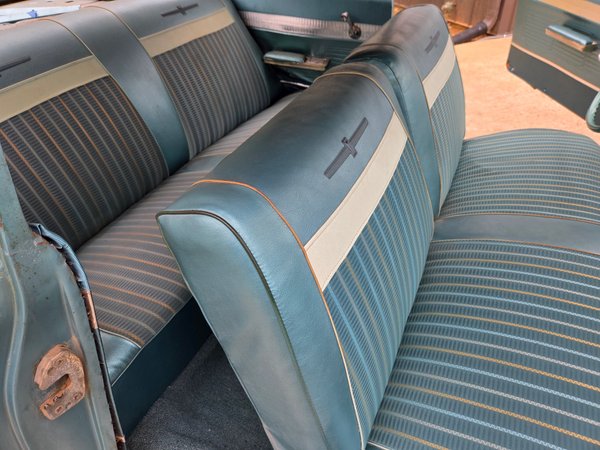 Presenting nicely in its aged original Aquamarine patina and very nice front and rear bench seats. Much of the interior is above expectation, like the original steering wheel without any cracks!